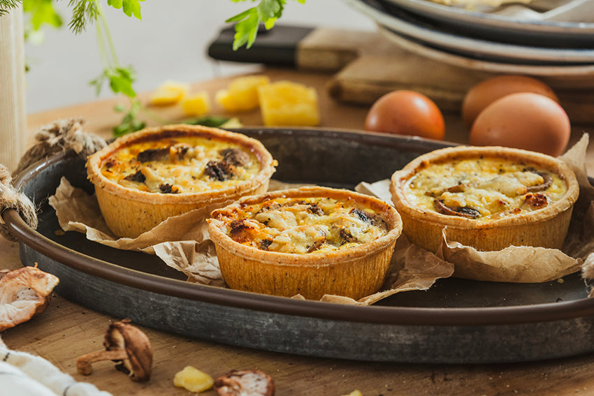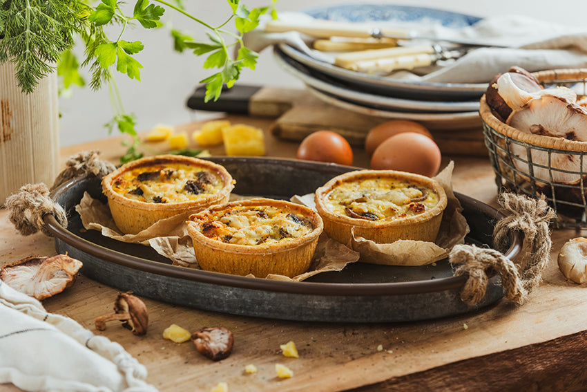 Our Bacon & Mushroom Quiche offers a deliciously satisfying flavour balance, combining the rich, smoky depth of crispy bacon with the earthy, savoury notes of tender mushrooms. The creaminess of the filling ties everything together, adding a luxurious texture that perfectly complements the flavours of the bacon and mushrooms.