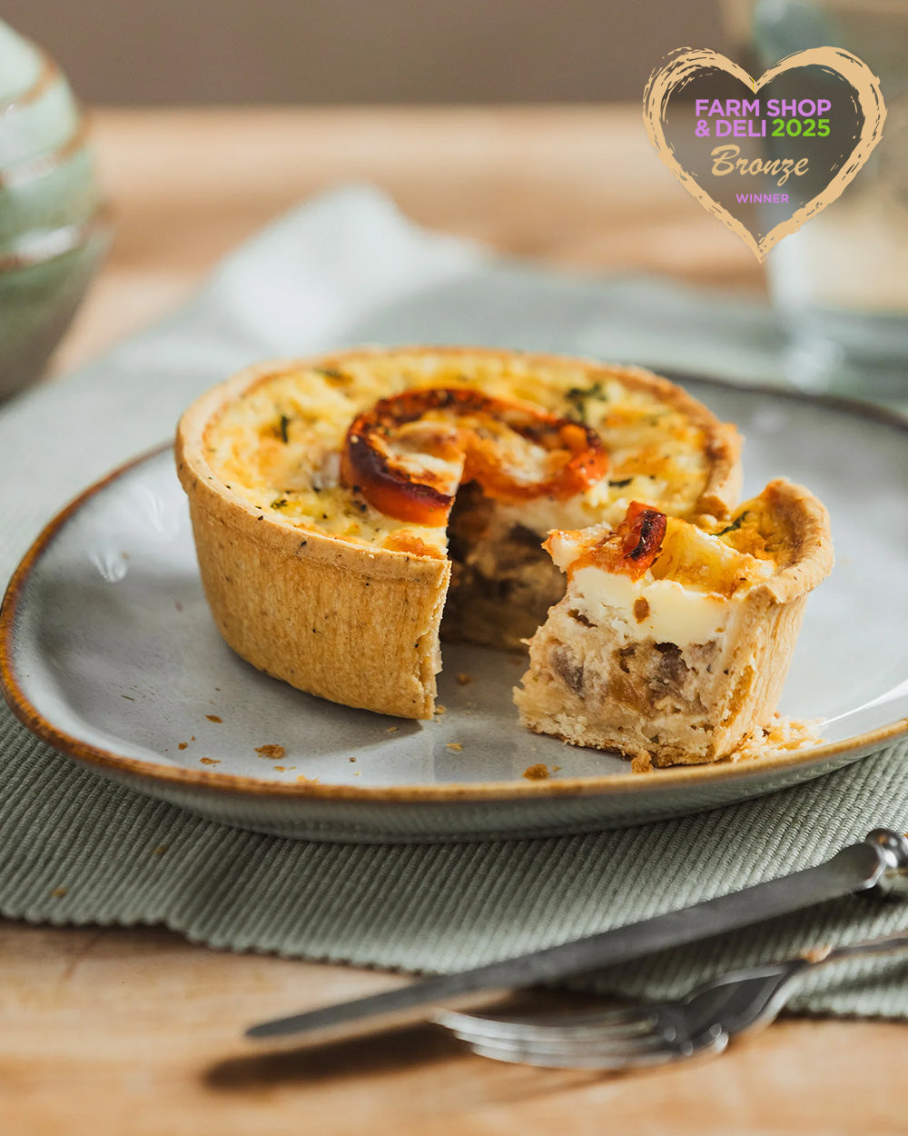 Our Brie & Tomato Quiche is a delightful combination of creamy, indulgent brie cheese and the vibrant, slightly sweet flavour of tomatoes, all wrapped in a perfectly crisp, golden pastry. The rich, velvety brie brings a luscious creaminess to the filling, while the tomatoes add a burst of concentrated, tangy sweetness that perfectly balances the smooth richness of the cheese.