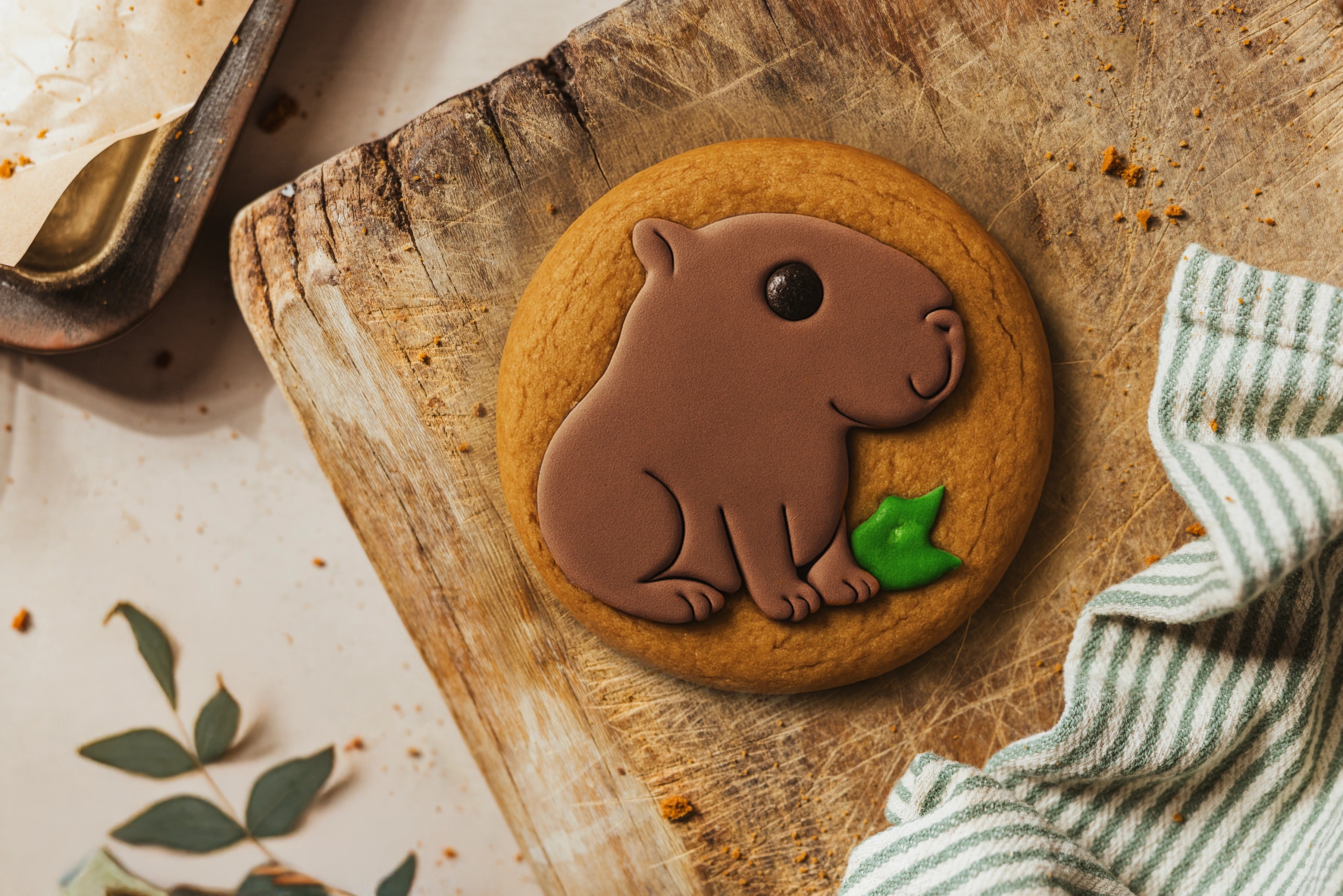 Say hello to our super cute Cappy the Capybara. Looking for a unique handmade ginger biscuit with charm and character? Meet Cappy the Capybara – a laid-back little biscuit inspired by everyone’s favourite gentle giant. With her sweet face and rounded capybara shape, Cappy brings a smile to every nibble.