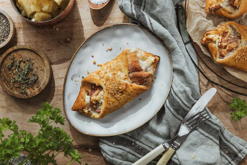 Indulge in the perfect blend of creamy cheese and smoky bacon, wrapped in a crisp, golden pastry. These delicious turnovers are handcrafted and supplied frozen, ready to bake for a quick and convenient savoury snack. Ideal for cafés, delis, and food service outlets, they offer a premium, ready-to-serve option for any menu. Available for wholesale, order online today to elevate your offering with this irresistible, flavour-packed treat.