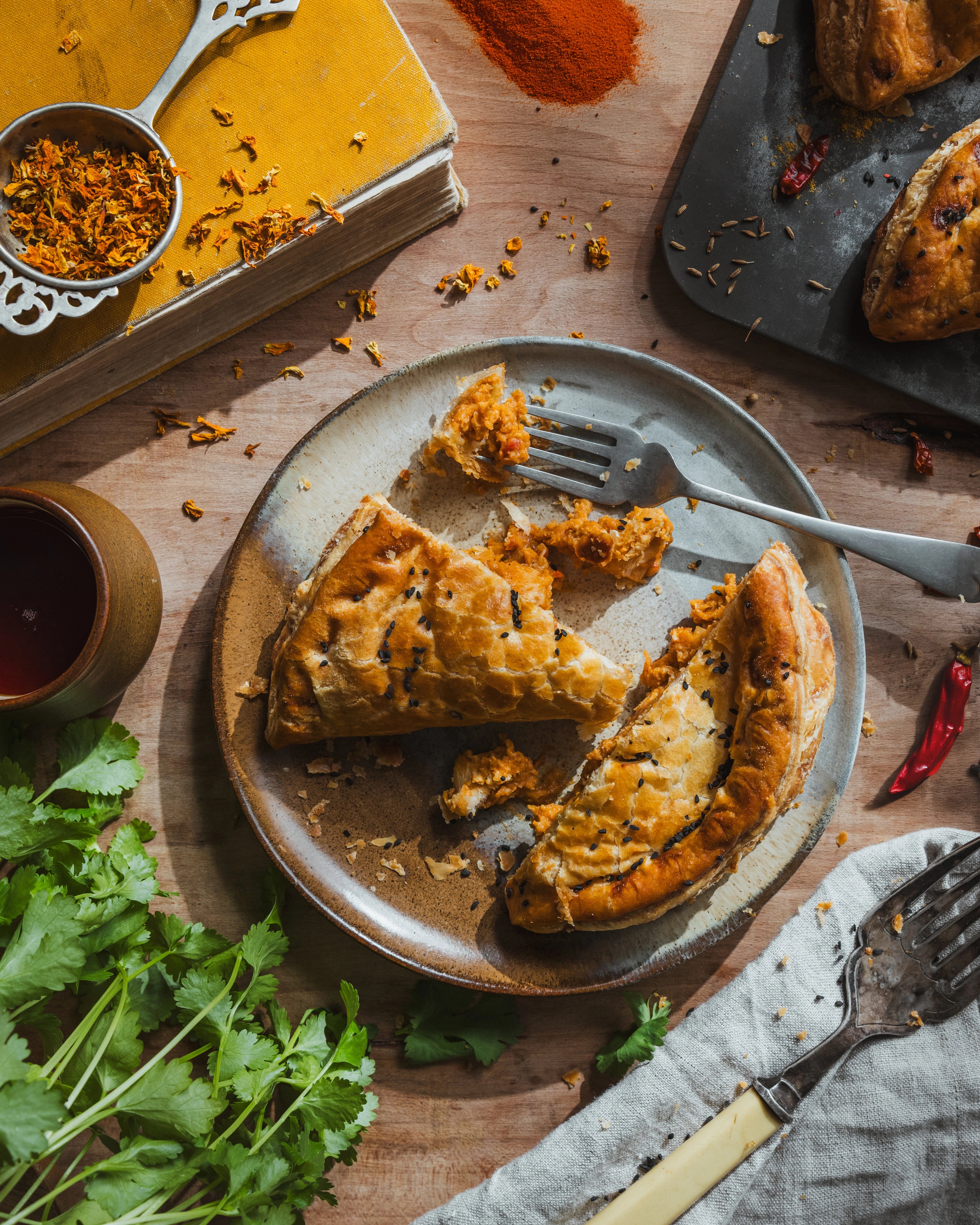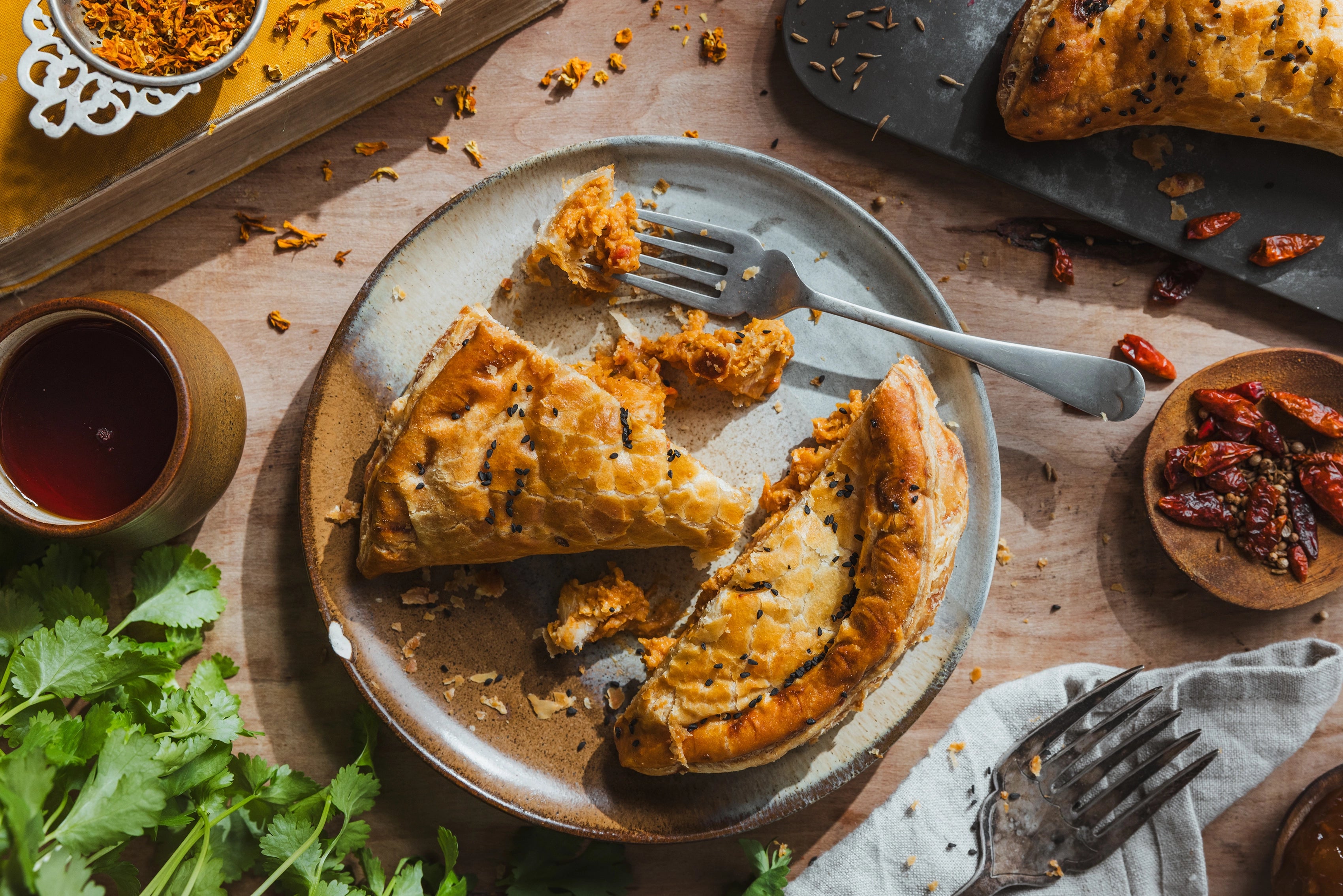 Each pastry is filled with succulent British chicken cooked in a lightly spiced, tomato-based curry sauce, bursting with rich, warming flavours and aromatic seasonings. The filling is encased in golden, flaky all-butter puff pastry, providing the perfect balance of crisp texture and buttery taste in every bite.