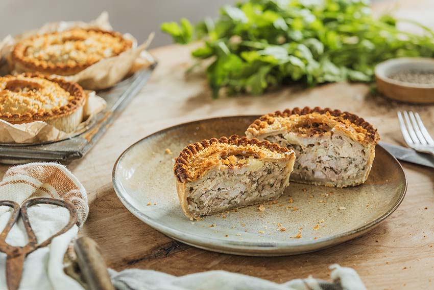 Surrounded by our signature all-butter pastry, this pie has a delicate, golden, and crispy exterior that perfectly contrasts with the tender, savoury pork. The carefully crafted pastry provides a buttery, flaky texture that doesn’t overpower the filling, ensuring a harmonious, flavourful experience.