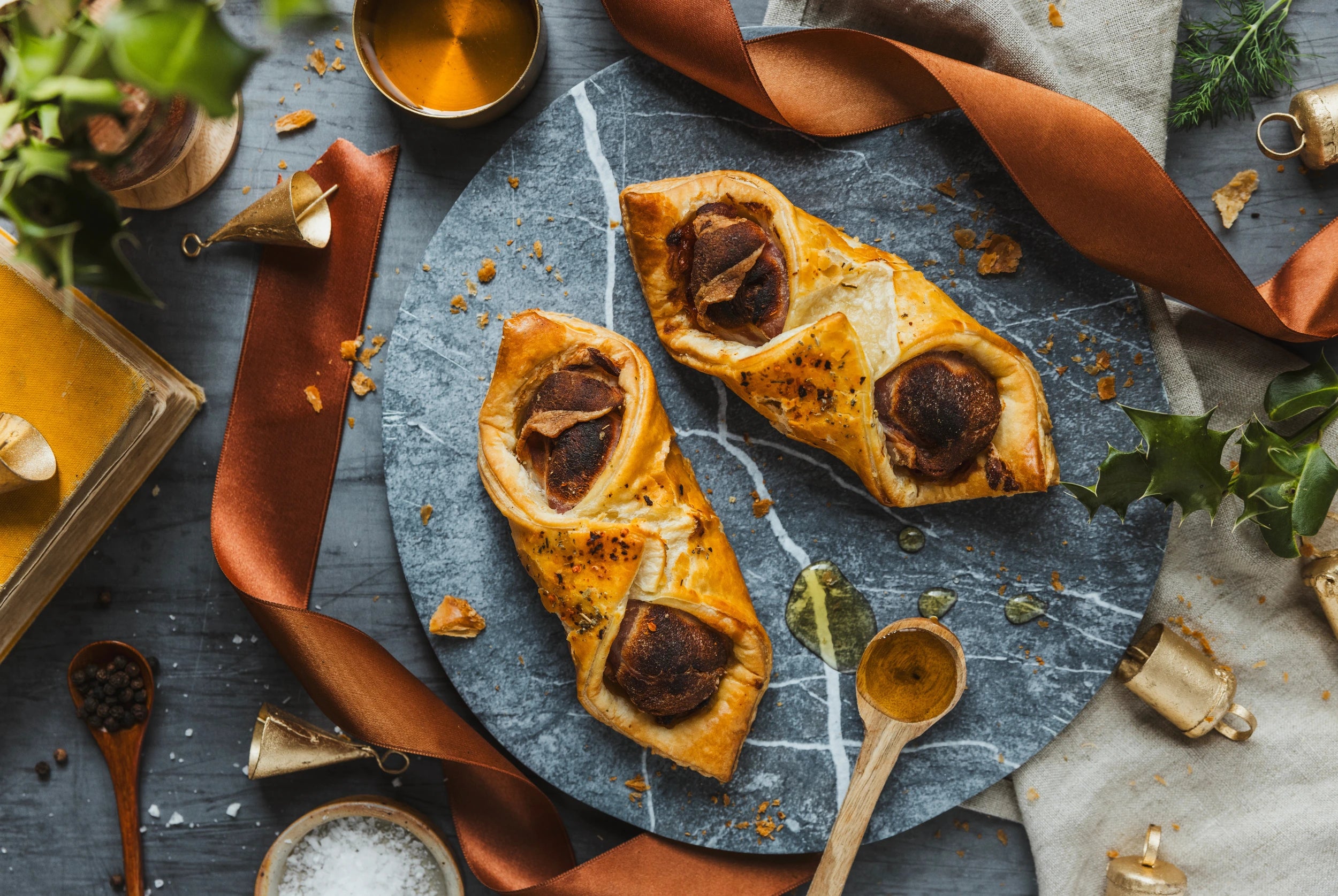 Crafted with flaky all-butter pastry, this product forms the perfect golden base for a rasher of smoky British bacon, a layer of vibrant tomato salsa, and a succulent hot honey sausage that delivers just the right balance of sweet heat and savoury depth. Each pastry is glazed with egg for a rich, golden finish and delicately sprinkled with paprika flakes and rubbed sage, adding aromatic warmth and colour.