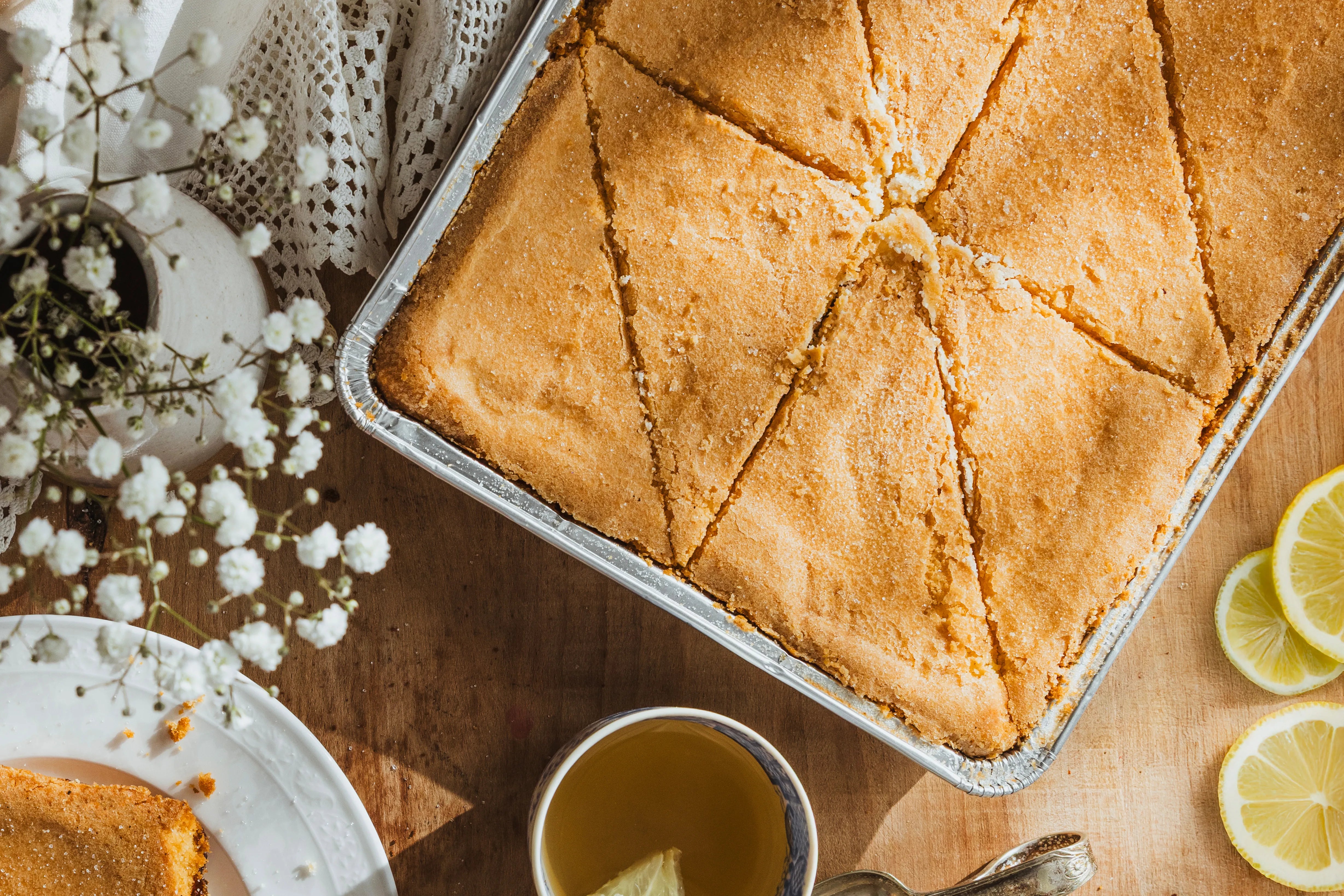 Say hello to your customer's new favourite pick-me-up! Our Lemon & Almond Crunch Traybake starts with a buttery, crisp biscuit base, piled high with tangy lemon curd and topped off with a soft, fluffy sponge. To finish, we sprinkle on a handful of golden flaked almonds for that perfect crunch and a little extra oomph.