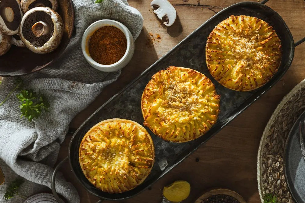 Elevate your savoury offering with our Mash-Topped Pork Stroganoff Pie, a refined twist on a European classic, reimagined as a complete, indulgent meal in one.