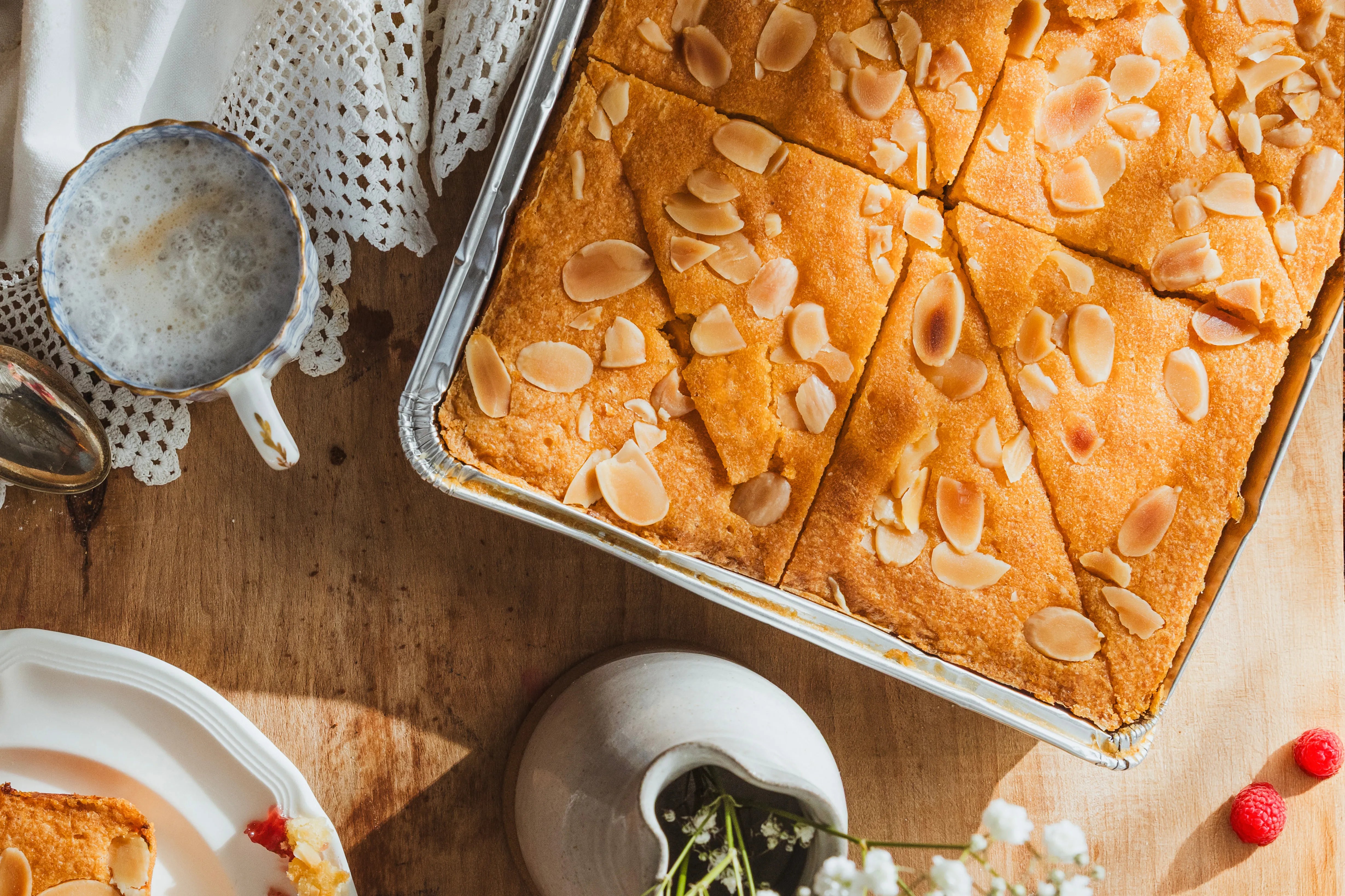 Delight your customers with our Gluten-Free Raspberry Bakewell Traybake - a perfect balance of delicate almond sponge and tangy raspberry jam, topped with a golden sprinkle of flaked almonds for extra crunch and eye-catching appeal. This classic bake is loved by many and crafted to deliver both flavour and elegance without gluten.