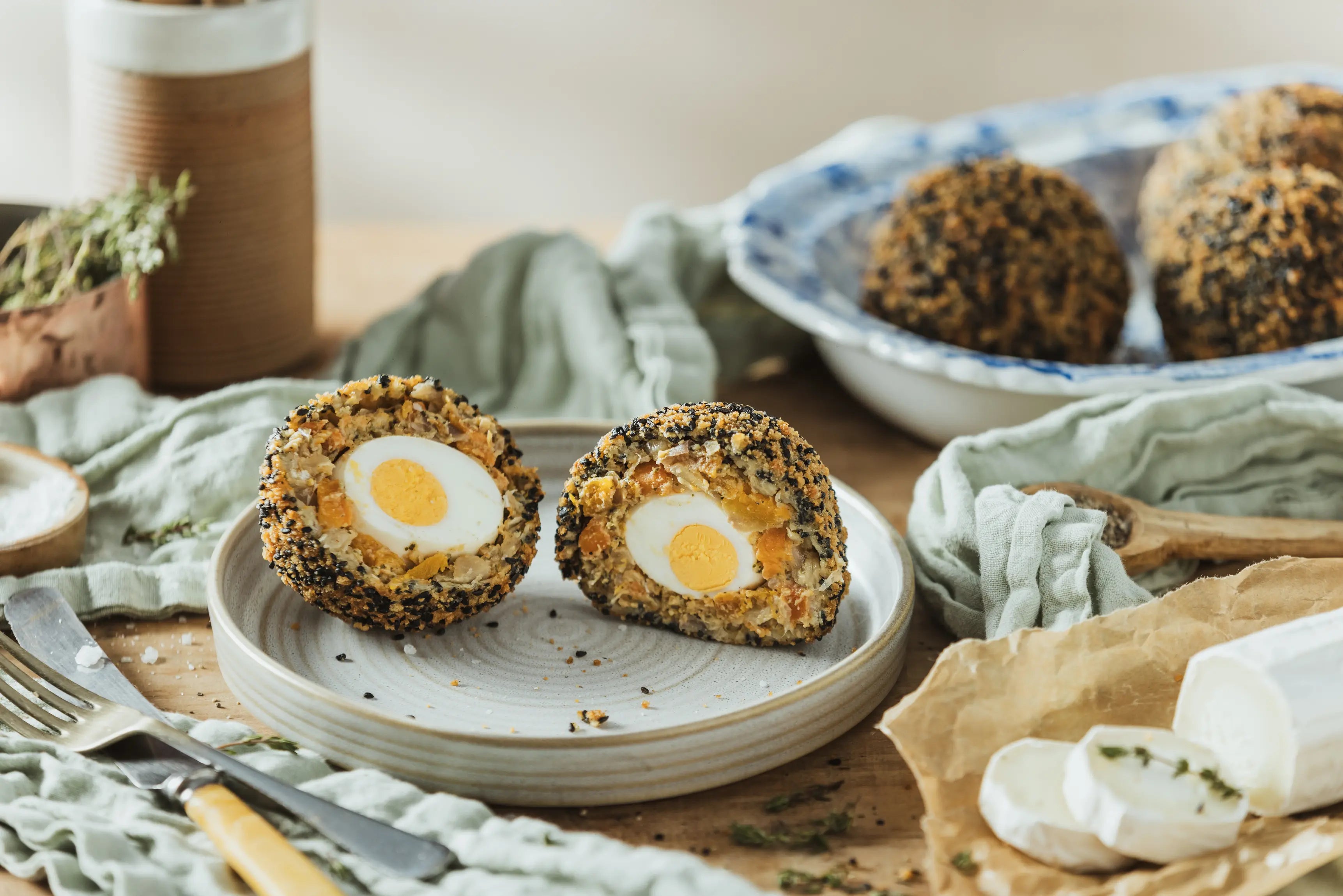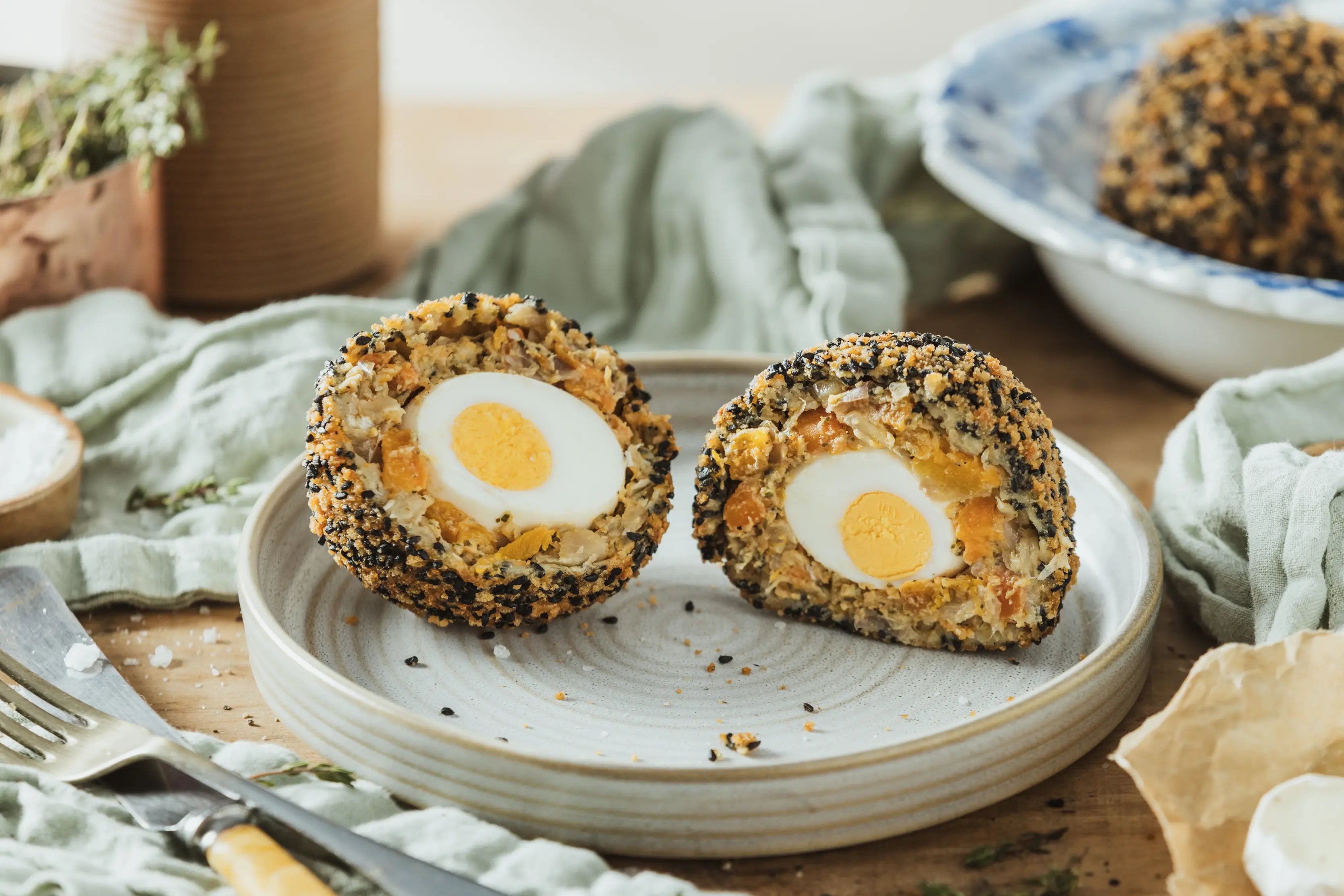 Hearty, wholesome, and full of flavour - our Roasted Root Vegetable & Goat's Cheese Scotch Egg is a vegetarian twist on the classic that doesn’t compromise on taste or satisfaction.