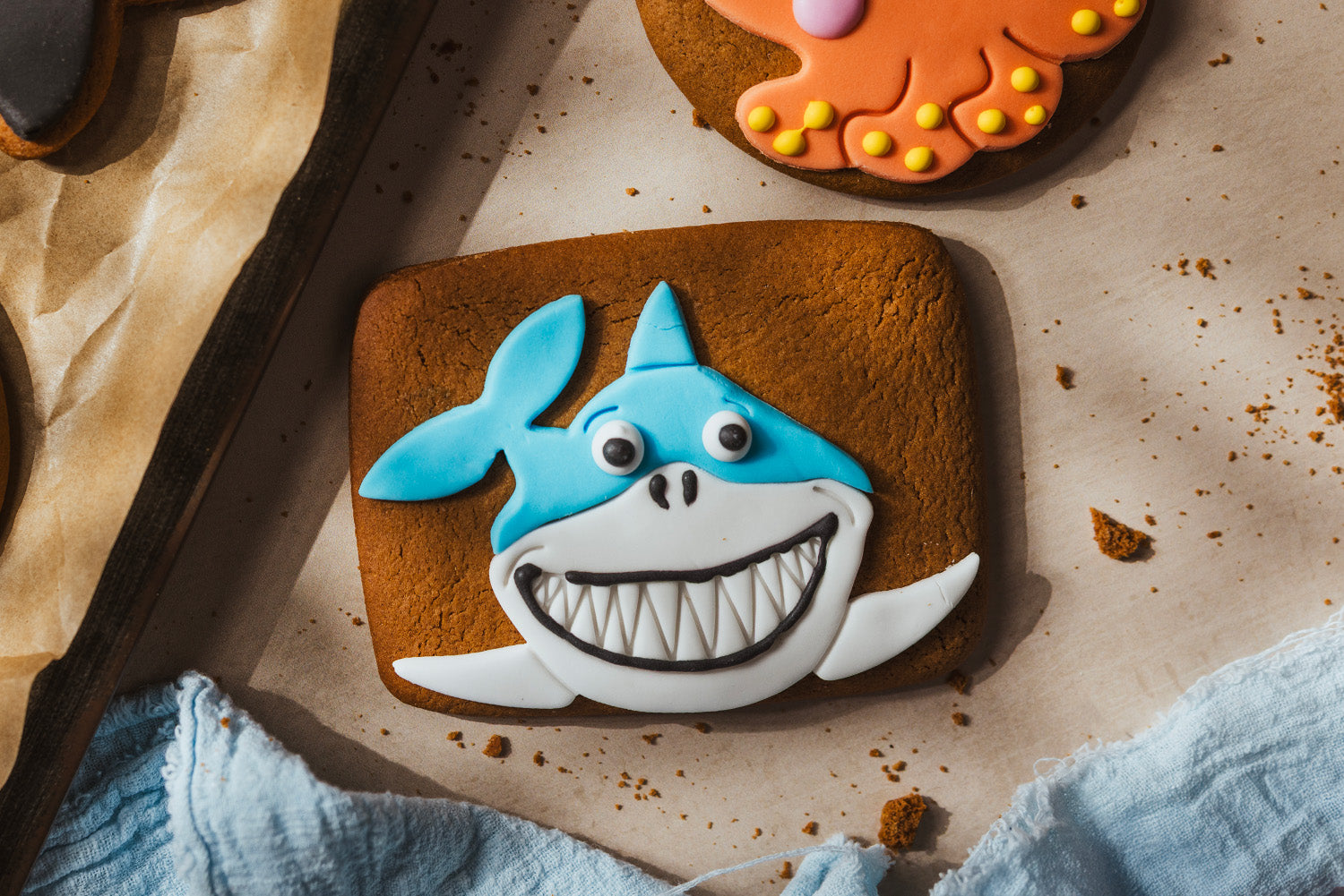 Make Waves with Our Shark Design Ginger Biscuit.
