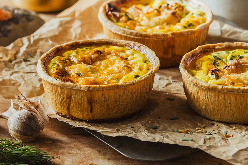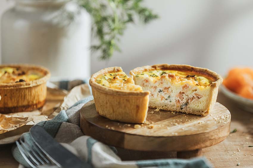 Our Salmon & Crème Fraîche Quiche combines the delicate, flaky richness of perfectly baked pastry with the fresh, savoury flavours of tender salmon and smooth crème fraîche. The creamy, tangy filling perfectly complements the delicate flakiness of the crust, offering a light yet satisfying bite with every forkful.