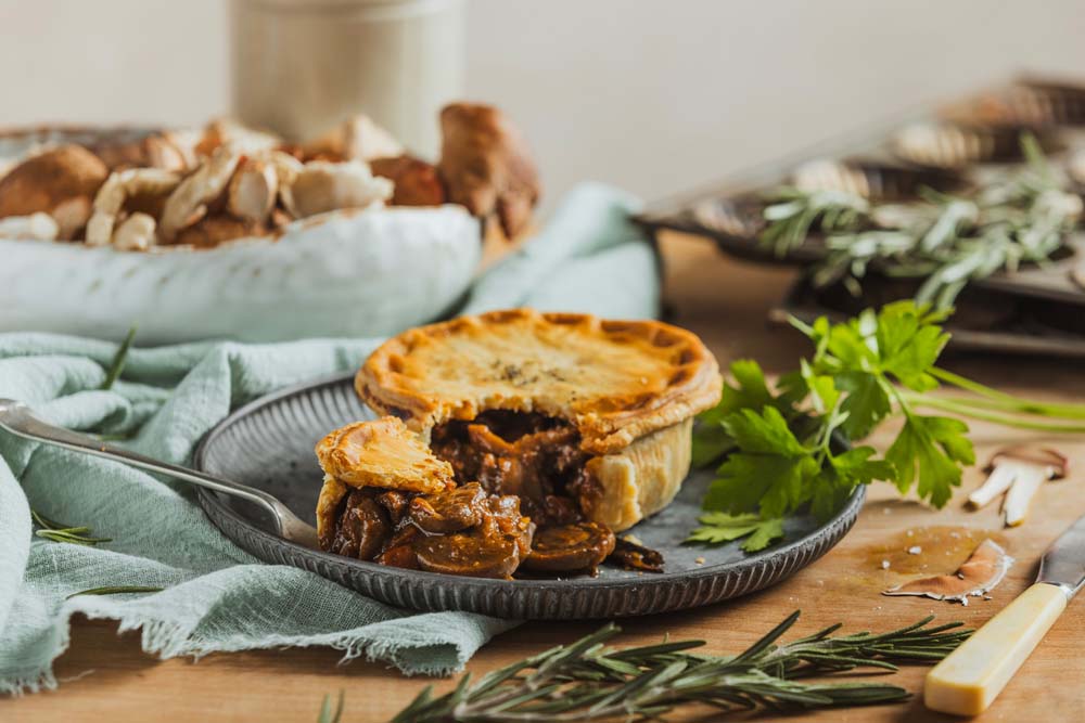 The beauty of woodland mushrooms lies in their versatility, particularly when slow-cooked. Through this method, the mushrooms release their natural juices, allowing their umami-rich flavours to infuse the dish and intensify as they cook. As they soften and shrink, their earthy taste becomes more concentrated, which makes them perfect for inclusion in pies.